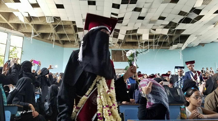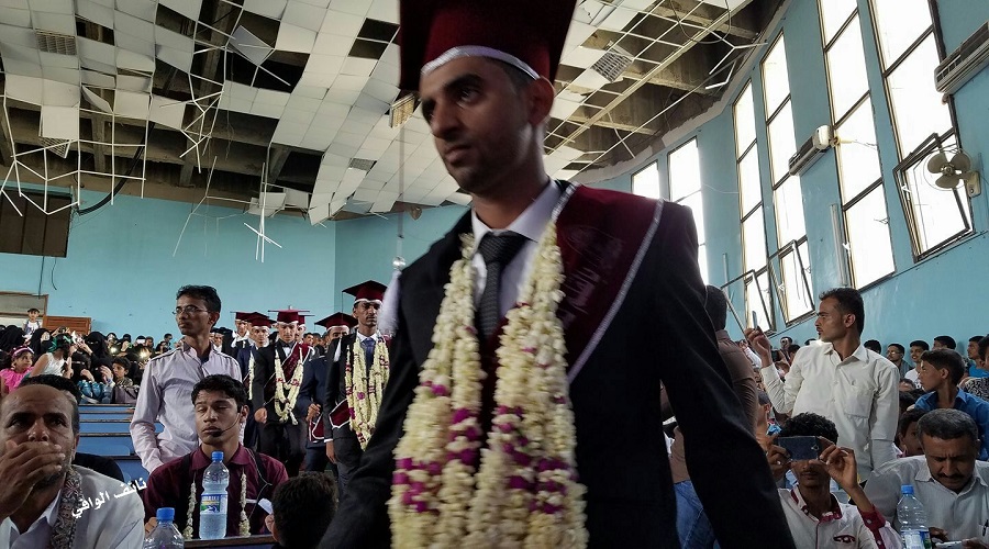 هكذا أصبحت احدى قاعات جامعة_تعز كما وثقتها كاميرا الصحفي نائف الوافي